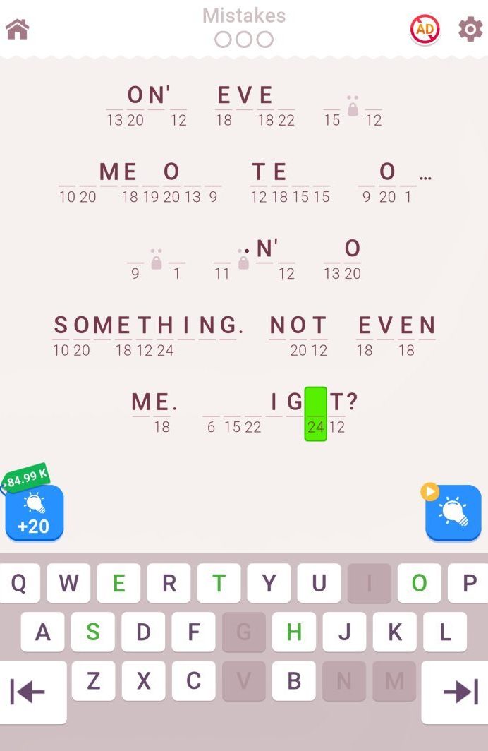 Cryptogram sice není přímo matematická hra, ale hlavní roli zde hrají čísla. Každý úkol spočívá ve vyluštění zašifrovaných anglických frází a slovních spojení. Obvykle je jedná o citáty historických i současných osobností, filmové hlášky apod. Vzhledem k tomu, že neexistuje česká mutace hry, je nutné umět anglický jazyk, případně přepnout hru do jiných jazyků. Hráč řeší Denní úkoly, Týdenní a Měsíční výzvy a další Eventy. Hra je zdarma, ale obsahuje hodně reklamních přestávek, zakoupením balíčku lze toto zrušit.